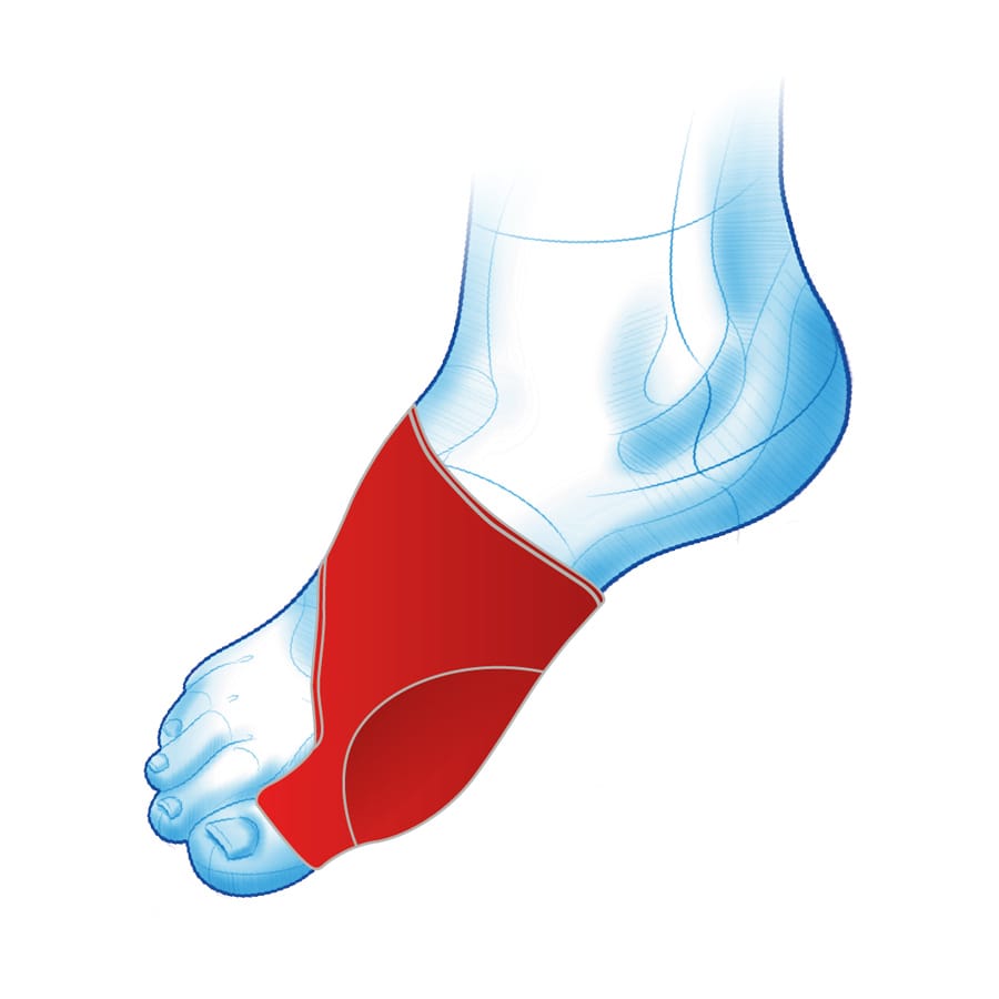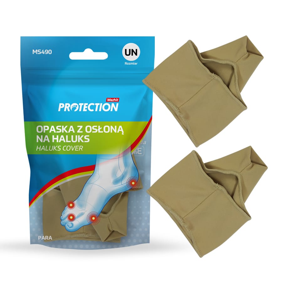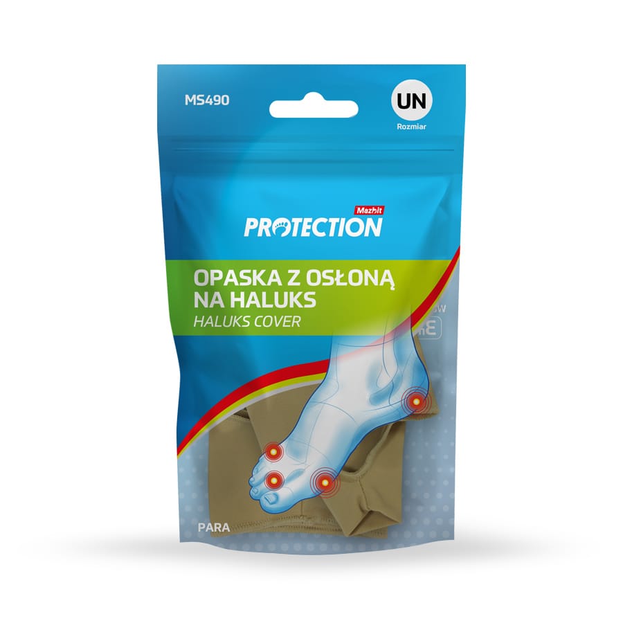 Elastyczna osłona na haluksa wykonana z cienkiej tkaniny i żelowej poduszczeki, która chroni bolesne zmiany w obrębie palucha przed otarciami, amortyzuje naciski przynosząc natychmiastową ulgę.